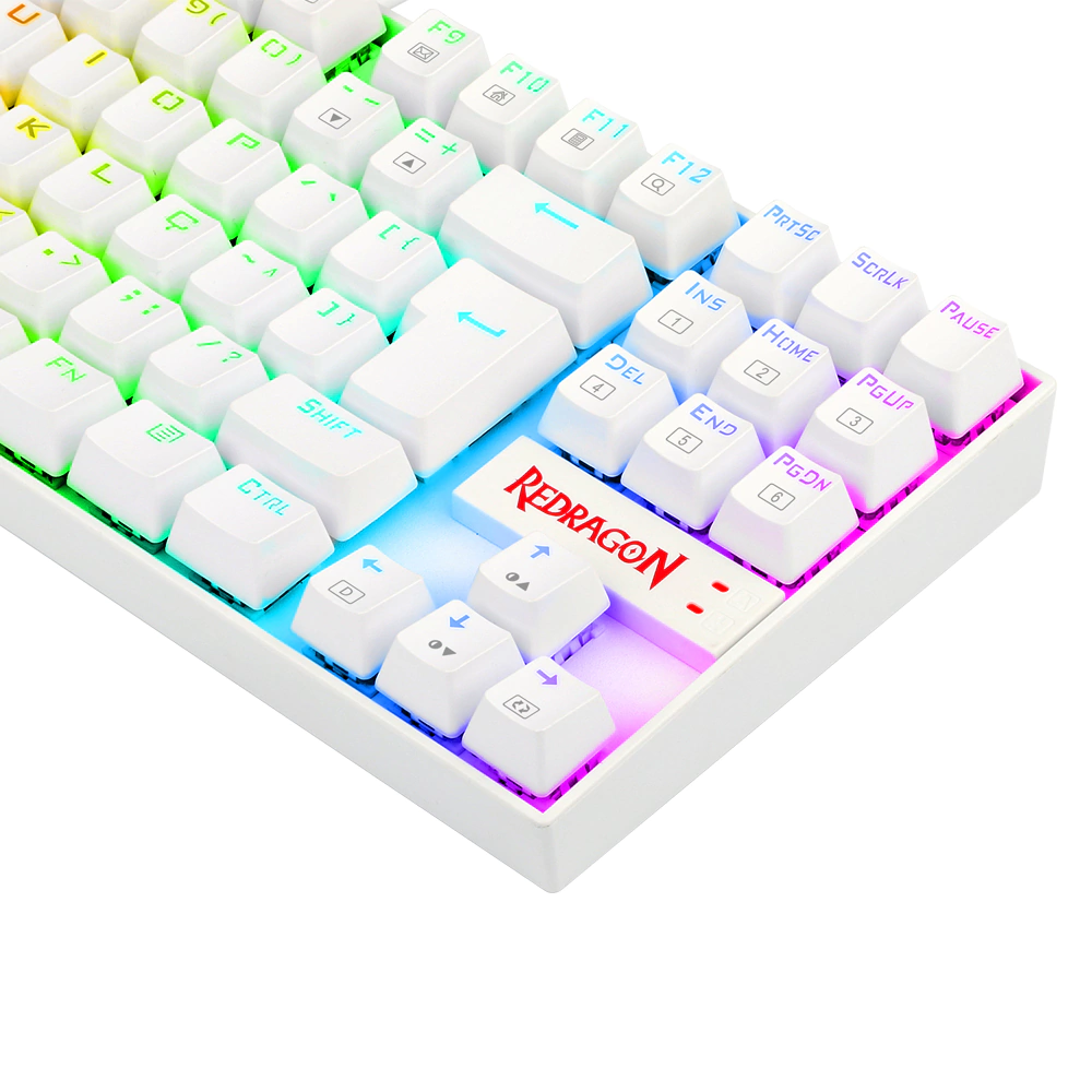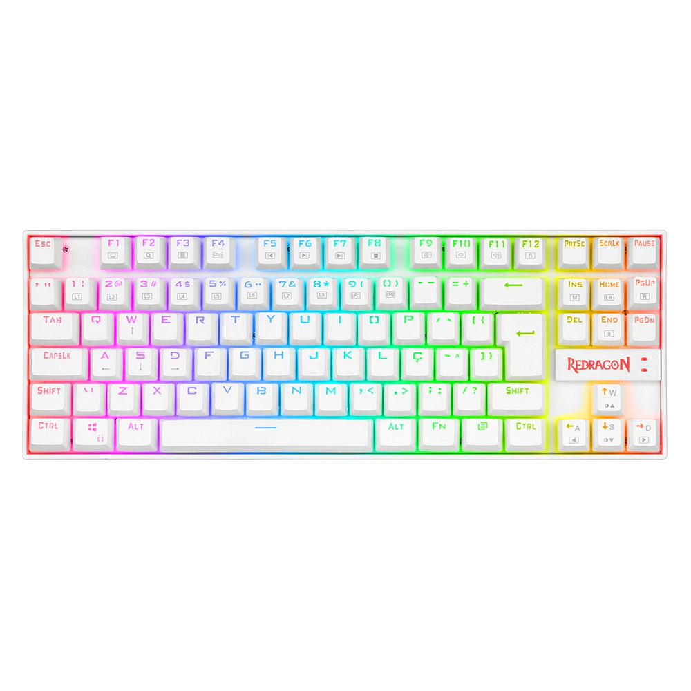 O Redragon Kumara Lunar White é o teclado mais vendido da Redragon no Brasil, e ajudou a popularizar o design TKL em nosso mercado. Com construção robusta, à base de plástico ABS e metal, anti-ghosting em todas as teclas, switches de alto desempenho e teclas no padrão ABNT2.